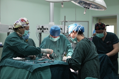 闻讯,居红芳主任走上手术台,拿起手术刀,为产妇实施剖宫产。